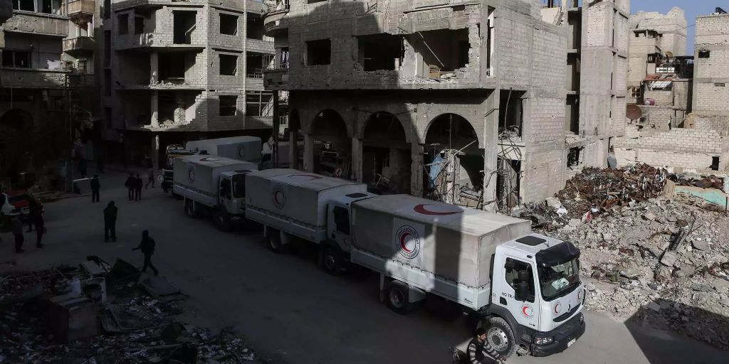 Humanitare Hilfe Fur Belagerte Region Hilfskonvoi Des Roten Kreuzes Im Syrischen Ost Ghouta Eingetroffen Deutsches Rotes Kreuz
