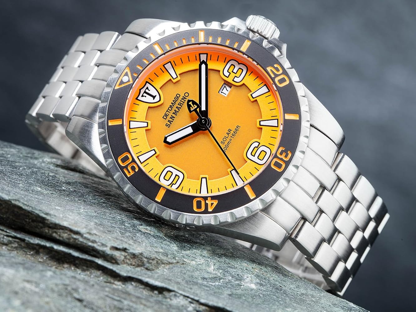 Amazon Com Detomaso Men S Dt1053 A San Marino Solar Divers Trend Orange Silber Analog Display Japanese Quartz Silver Watch Watches