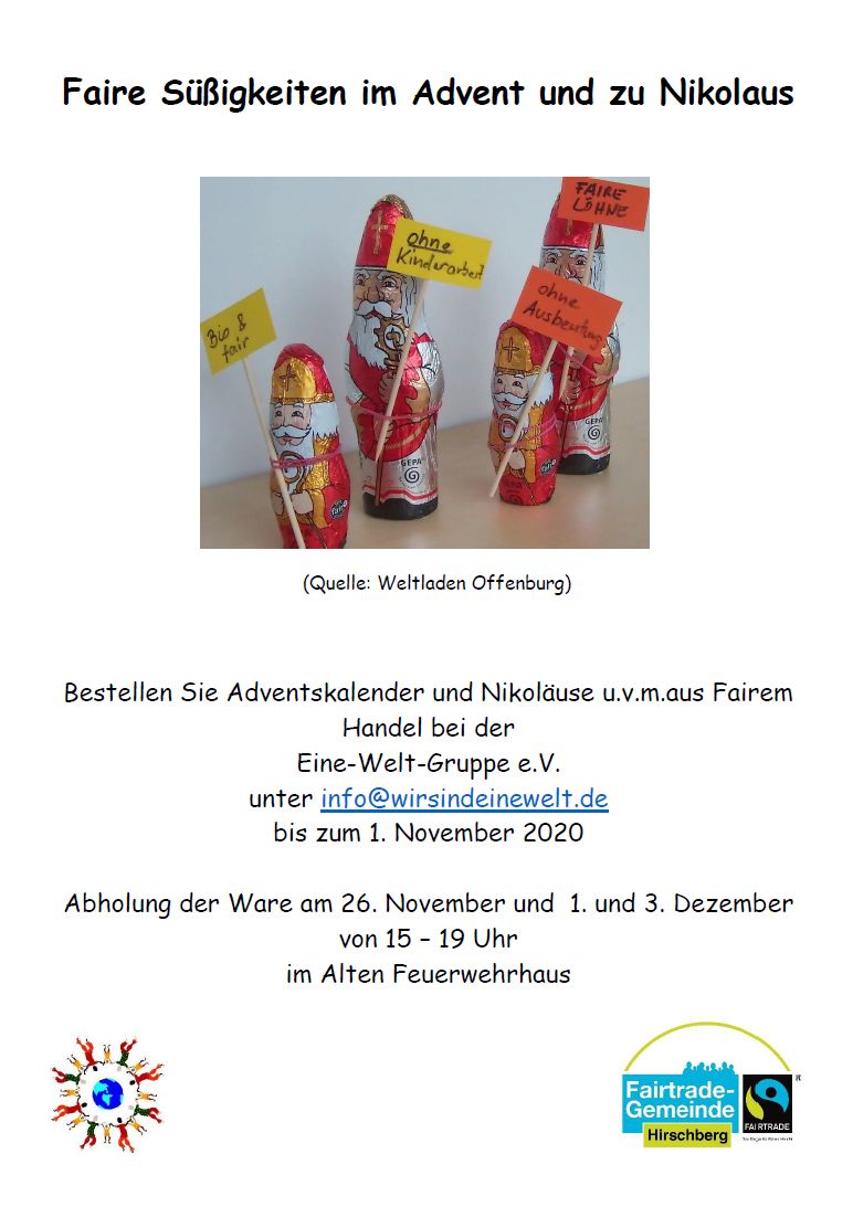 Faire Sussigkeiten Im Advent Und Zu Nikolaus Mtb 16 10 Eine Welt Gruppe Hirschberg E V