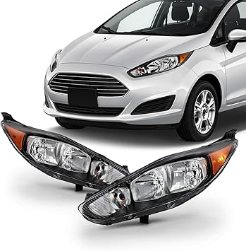 Amazon Com Fits 14 15 16 17 Ford Fiesta S Se St 18 Titanium Halogen Type Black Trim Headlight Pair Left Right Automotive