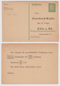 Dr Ganzsachen Postkarte P180 Zudruck Standard Radio Dr E Vogt Koln A Rh Ebay
