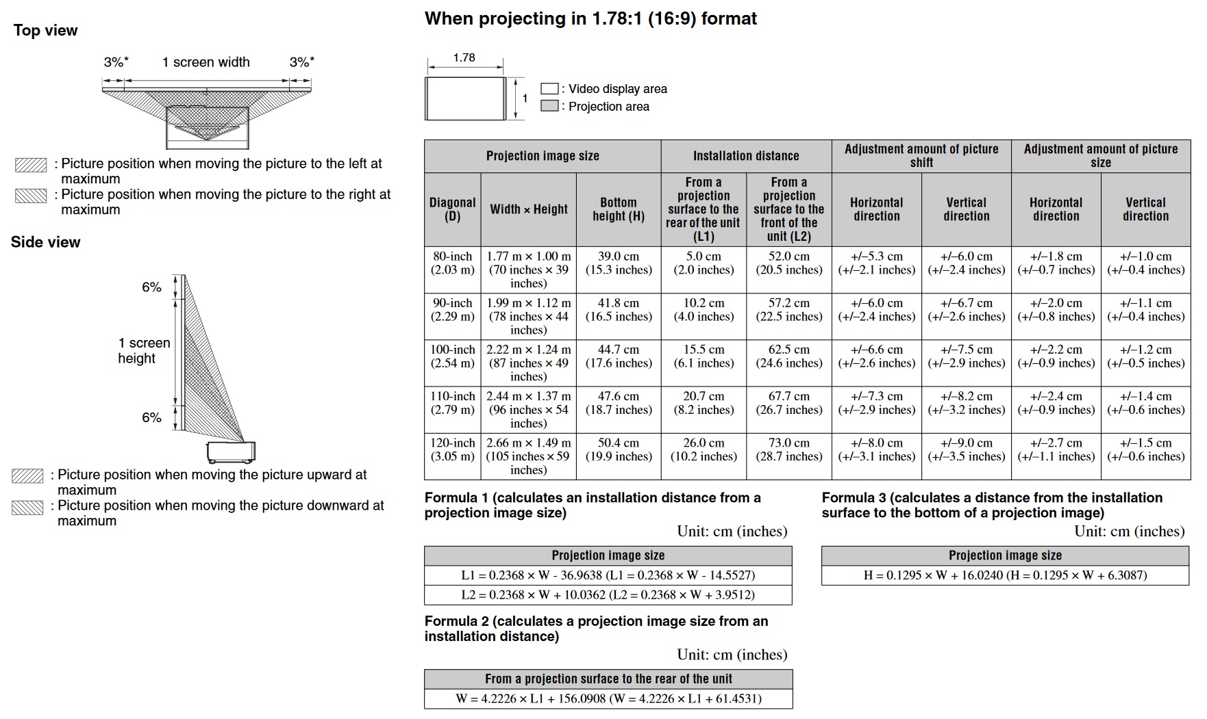 Sony Projektor Abstandsrechner のギャラリー