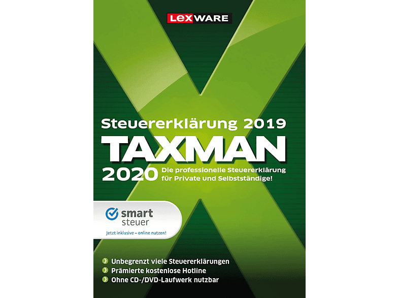 Lieferumfang 1 x CD Taxman in frustfreier Verpackung von HaufeLexware für das Steuerjahr 19 für eine einfache, übersichtliche Steuererklärung mit schnellem Programmüberblick Neu und gebraucht (17) ab 23,50 € 3,00 € Versand. Wer noch keine Erfahrung mit der Steuererklärung hat und das meiste aus seiner Erstattung holen möchte, sollte in eine kostenpflichtige Software investieren TAXMAN ist für die meisten Steuerfälle eine sehr gute Wahl Wer seine Steuererklärung lieber online erstellen möchte, statt eine Software zu installieren, sollte sich smartsteuer. TAXMAN einfach schnell sicher Bestellen Sie jetzt die neue Version von TAXMAN für nur 29,90 €.