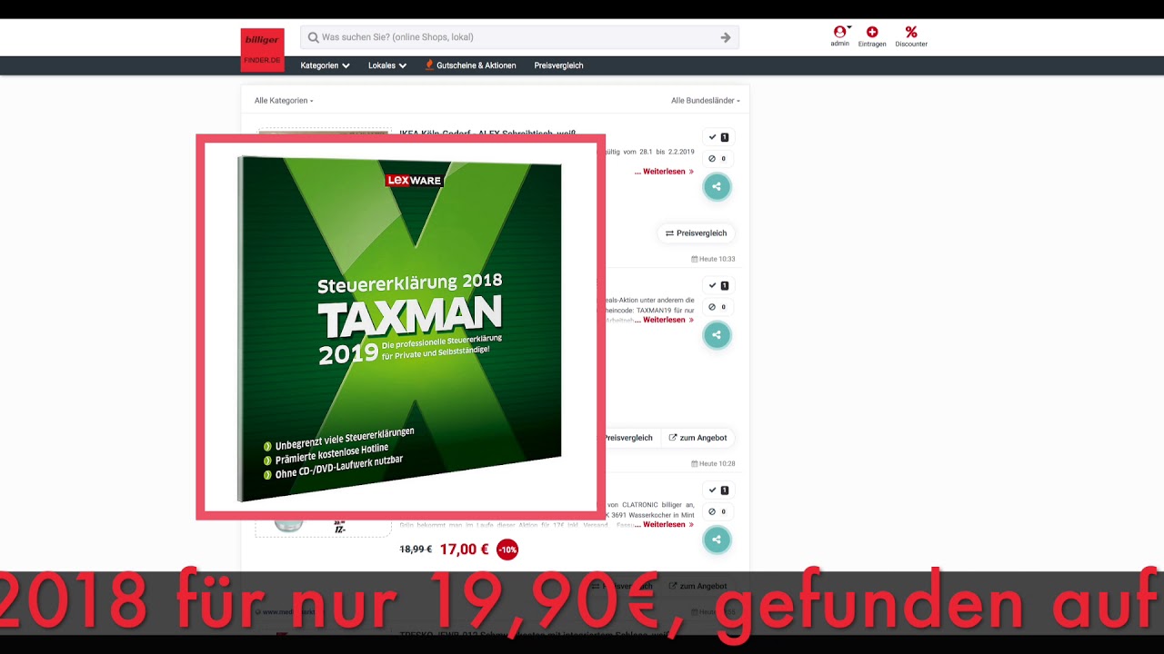 Schnappchen Des es 1 02 19 Lexware Taxman 19 Steuererklarung 18 Youtube