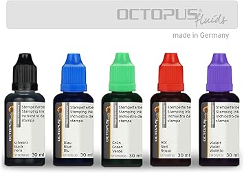 Stempelfarbe Zum Nachtranken Von Stempelkissen Und Stempelautomaten 5x30ml Schwarz Blau Grun Rot Violett Ohne Ol Amazon De Burobedarf Schreibwaren