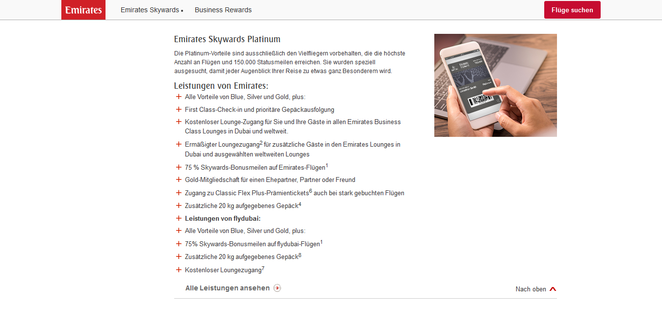 Neuer Emirates Skywards Platinum Status Vielfliegerprogramme