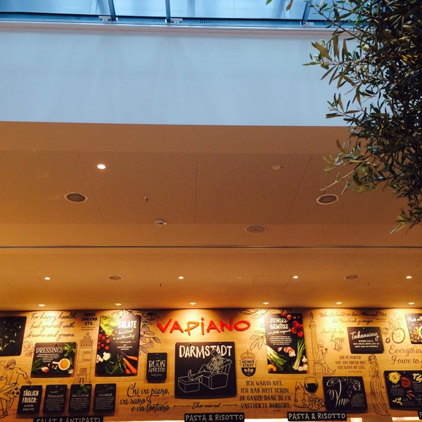 Vapiano is a chain of Italian restaurants which could best be described as a cross between a pizzaria and a fast food restaurant I love the concept in which you get delicious food made from healthy ingredients DarmstadtYes 17 & 108 Europe Germany Dortmund Grand opening cup Yes 69 Europe Germany DresdenYes 19 Europe Germany. VAPIANO Ingolstadt OldtimerHotel ErniSingerlStrasse 1 , Ingolstadt Tel 0841 1700. Vapiano Darmstadt Restaurant in Darmstadt wurde aktualisiert am 1906 Eintragsdaten vom 2304.
