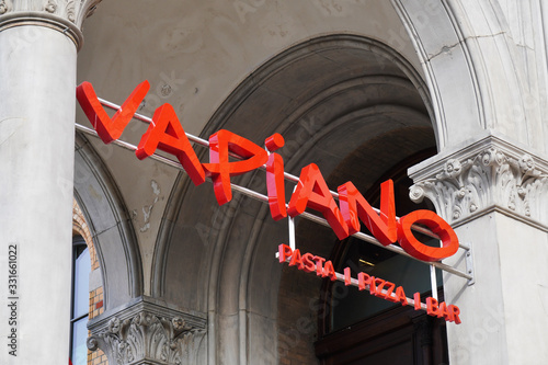Hannover Germany March 2 Vapiano Logo Sign At Local Branch Of German Franchise Restaurant Chain Serving Italian Food Like Pizza And Pasta Buy This Stock Photo And Explore Similar