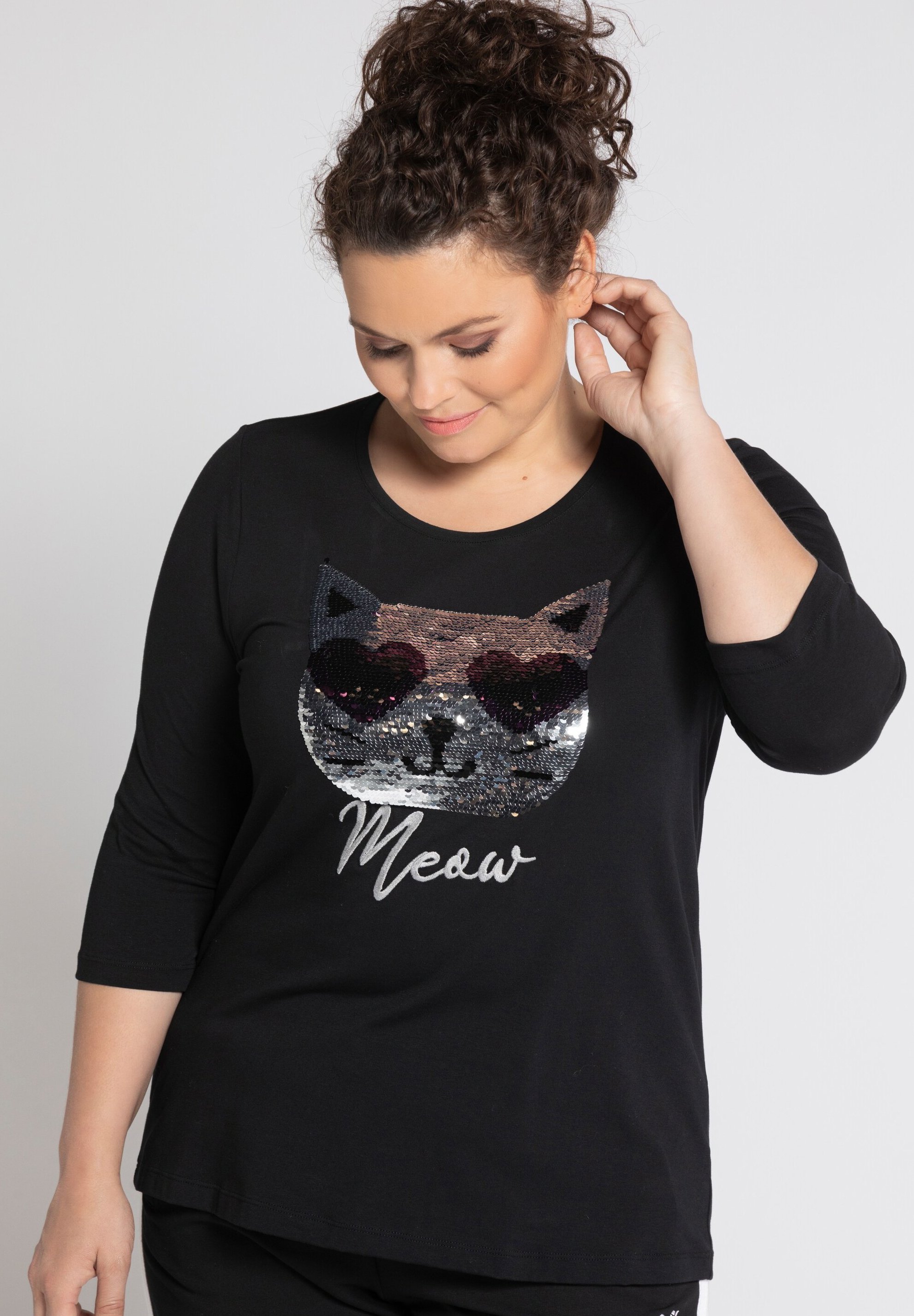 Ulla Popken Damen Grosse Grossen Langarmshirt Schwarz Zalando De