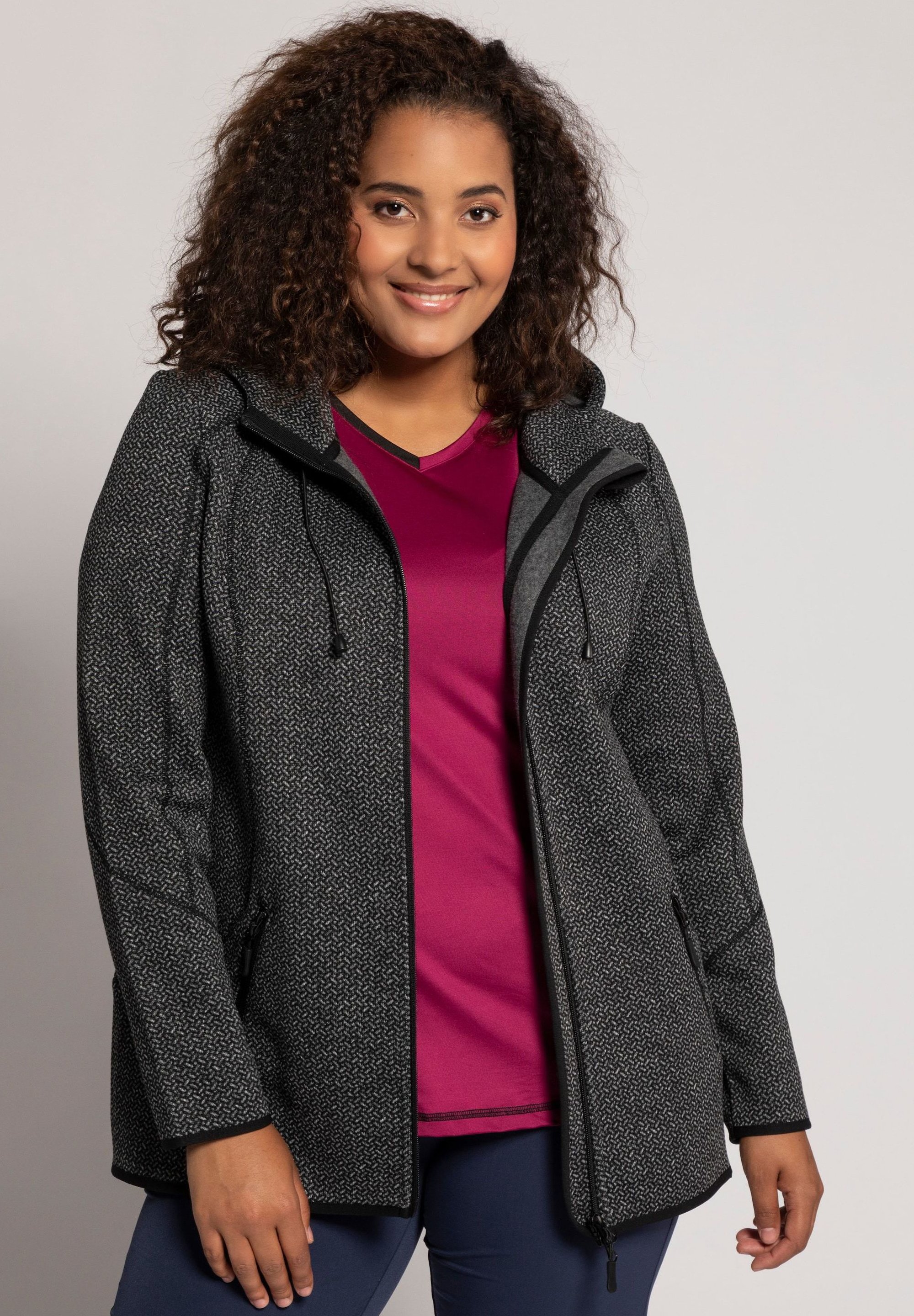 Ulla Popken Damen Grosse Grossen Sweatjacke Schwarz Zalando De
