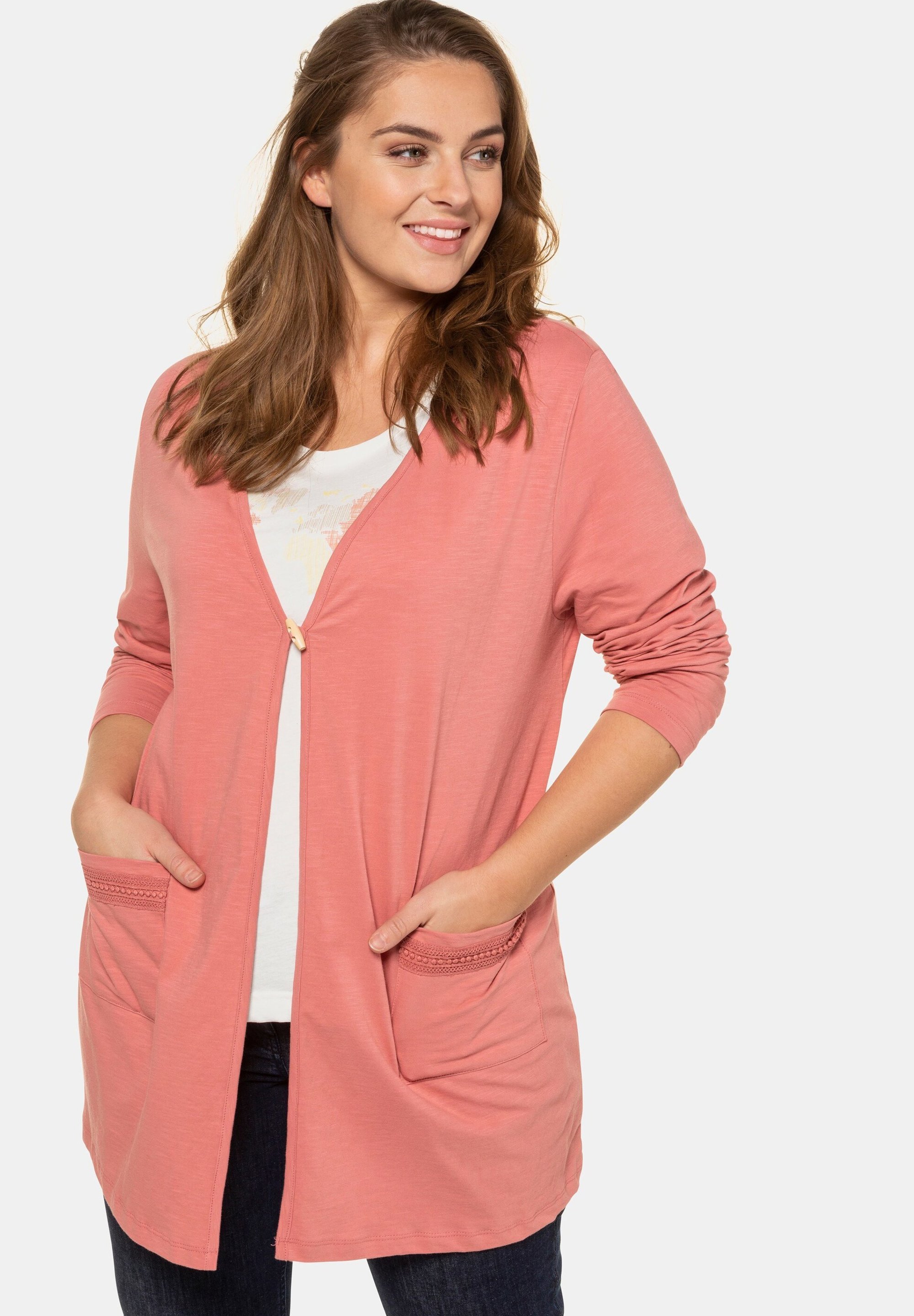 Ulla Popken Damen Grosse Grossen Shirtjacke Strickjacke Rosenholz Hellrot Zalando De