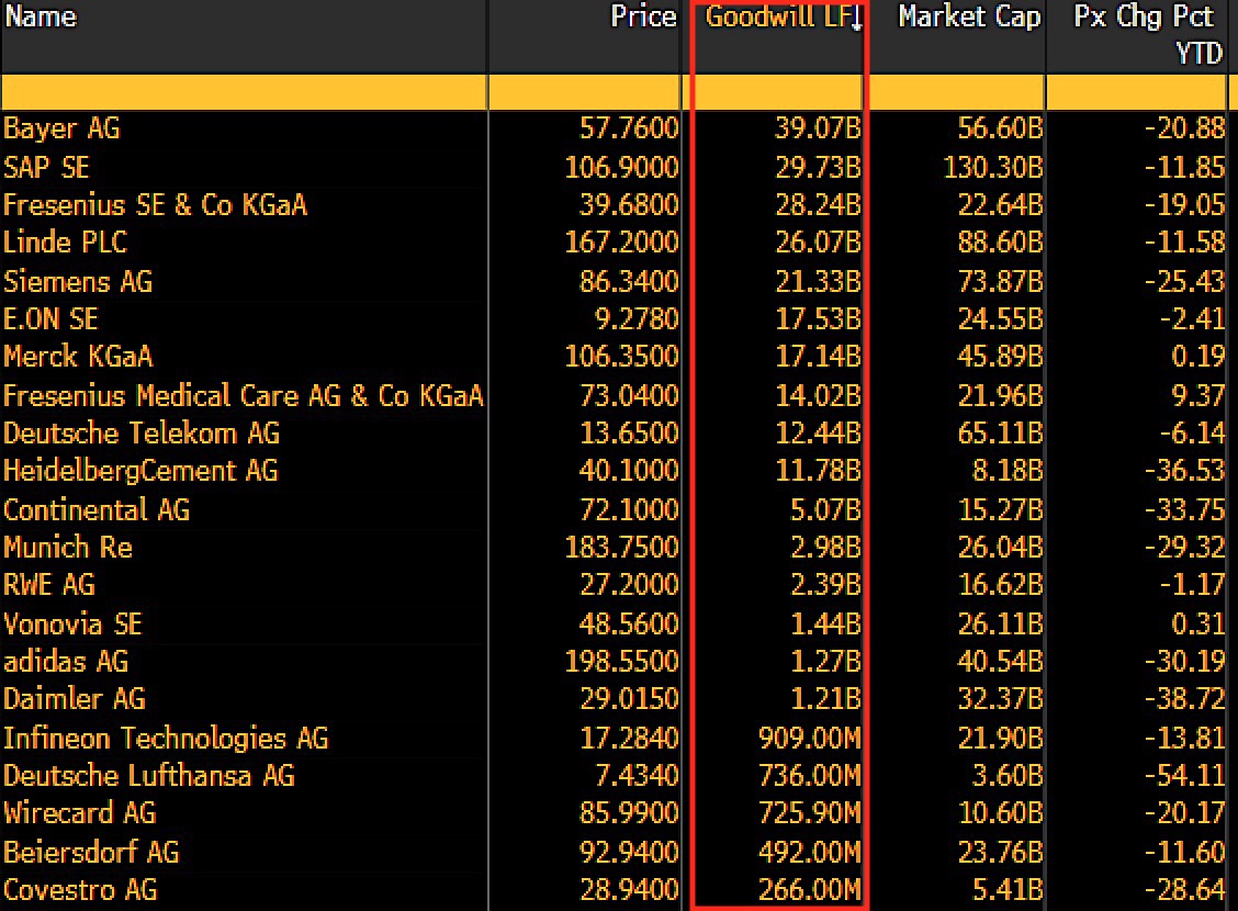 Holger Zschaepitz Good Morning From Germany Where A Billion Dollar Bomb Is Ticking In Balance Sheets Of Blue Chip Companies The 30 Dax Comps Have Accumulated Goodwill Of Almost 260bn