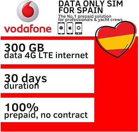 Vodafone 300gb Daten Sim Karte Prepaid Fur Spanien 4g Amazon De Elektronik