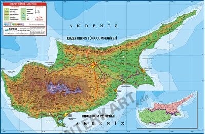 Zypern Physikalische Landkarte 100 X 70cm