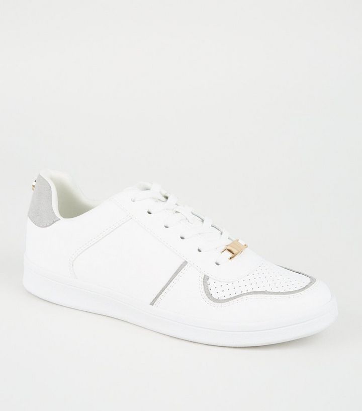 Weisse Turnschuhe In Leder Optik Mit Kontrastsaum New Look