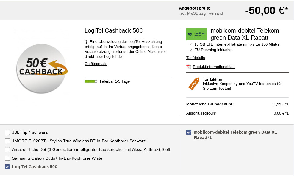 Preiskracher 64 Prozent Rabatt 50 Euro Cashback Mit Telekom 15 Gb Lte