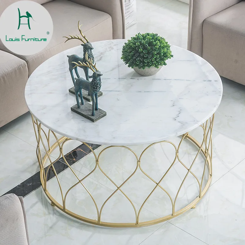 Louis Mode Marmor Tisch Kaffee Rund Moderne Wohnzimmer Kreative Kleine Familie Gold Eisen 05