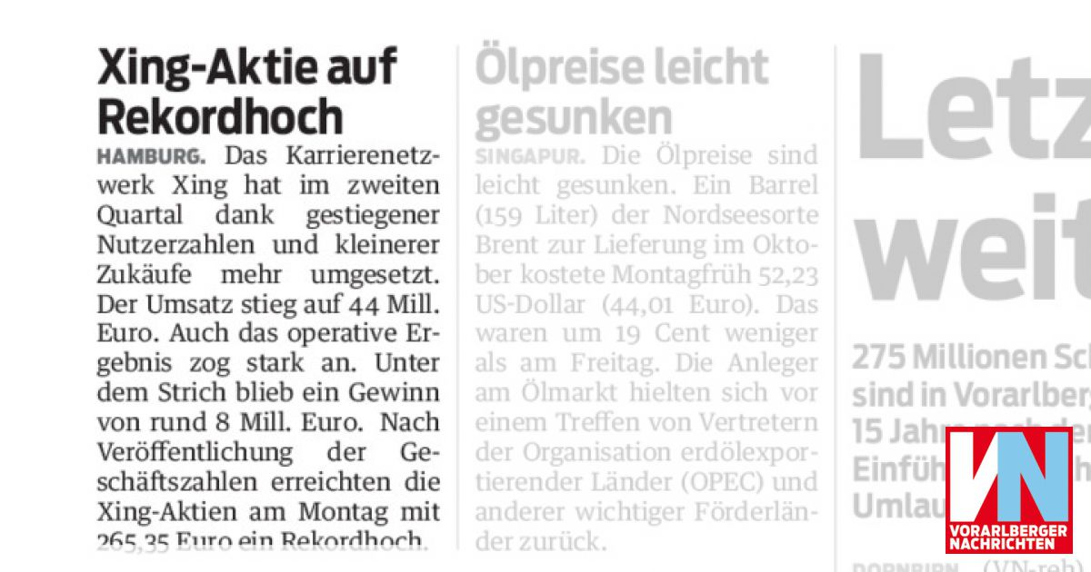 Xing Aktie Auf Rekordhoch Vorarlberger Nachrichten Vn At