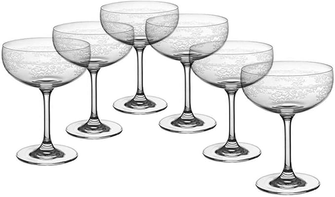 Cristalica Sektschale 6er Set Schaumweinschale Champagner Kristallglas 150ml Panto Floral Iernenubleifi
