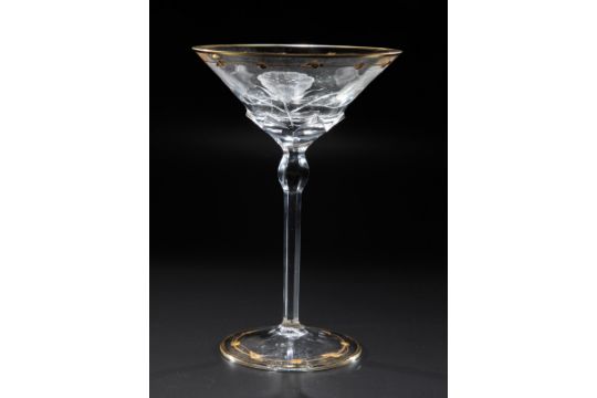 Sektschale Rose Moser Karlsbad 1902 Farbloses Glas Mit Gravur Und Vergoldung Dekor Rosenzwei
