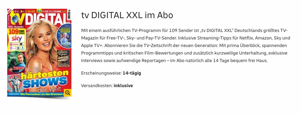 Tv Digital Xxl Abo Mit Top Pramien Zeitschriften Abos