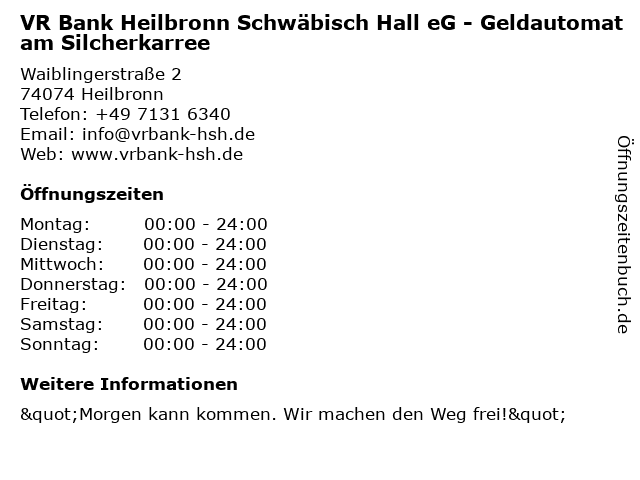 ᐅ Volksbank Heilbronn eG Geldautomat in Heilbronn ⌚ Öffnungszeiten Adresse 1 Bewertung Bei Gelbeseitende ansehen. Bitte halten Sie mindestens 1,5 Meter Abstand;.
