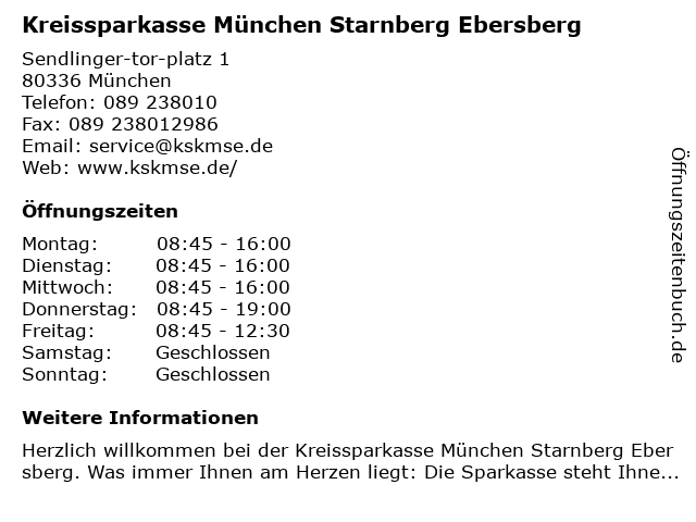 ᐅ Offnungszeiten Kreissparkasse Munchen Starnberg Ebersberg Sendlinger Tor Platz 1 In Munchen