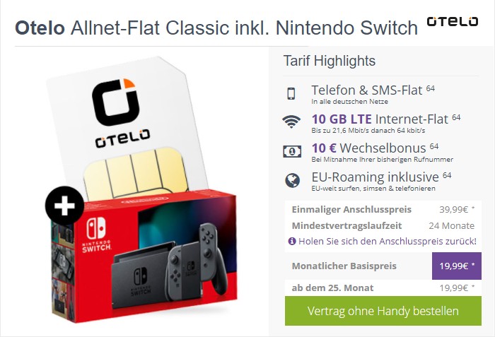 Otelo Allnet Flat Classic Mit Zugabe Ab Eff 6 28 Im Monat