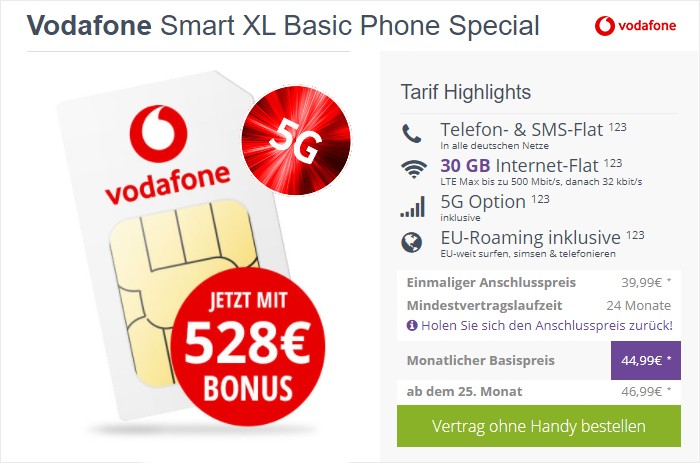 Vodafone Smart Xl Sim Only Inkl 5g Fur Eff 22 99 Pro Monat