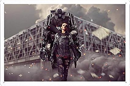 Amazon De Kpsheng Metallposter Motiv Madchen Roboter Polizei Guns Smoke Debris