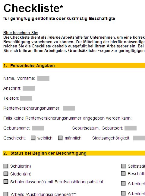 Versicherungsrechtliche Beurteilung der Auszubildenden in der beruflichen Pflegeausbildung nach dem Pflegeberufegesetz 3 Gemeinsames Rundschreiben zur versicherungs, beitrags und melderechtlichen Behandlung von Beschäftigungsverhältnissen im Übergangsbereich nach § Abs 2 SGB IV 4. Versicherungsrechtliche Beurteilung von kurzfristig Beschäftigten Name, Vorname Versicherungsnummer (ersatzweise Geburtsdatum) Straße, Hausnummer PLZ/Ort Beschäftigt als. Weitere wichtige Merkmale für eine Feststellung der Sozialversicherungspflicht in einer sozialversicherungsrechtlichen Beurteilung Selbständiger sind zum Beispiel, dass keine versicherungspflichtigen Angestellten beschäftigt werden und dass überwiegend oder ausschließlich für einen Auftraggeber gearbeitet wird.