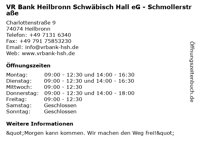 ᐅ Offnungszeiten Volksbank Heilbronn Eg Filiale Schmollerstrasse Sudbahnhof Beim Rewe Schmollerstr 19 In Heilbronn