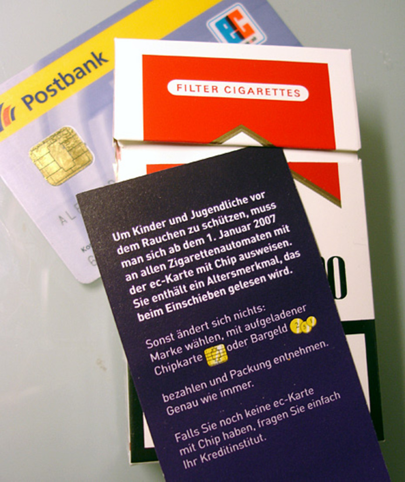Zigaretten gehören nicht in die Hände von Minderjährigen, denn diese können die gesundheitlichen Risiken für sich und ihr Leben noch nicht abschätzen. Posted 4/6/08 1048 AM, 608 messages. Wie funktioniert ein Zigarettenautomat mit Ec Karte?.
