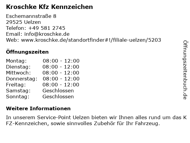 Kroschke Kfz Zulassung Uelzen Offnungszeiten