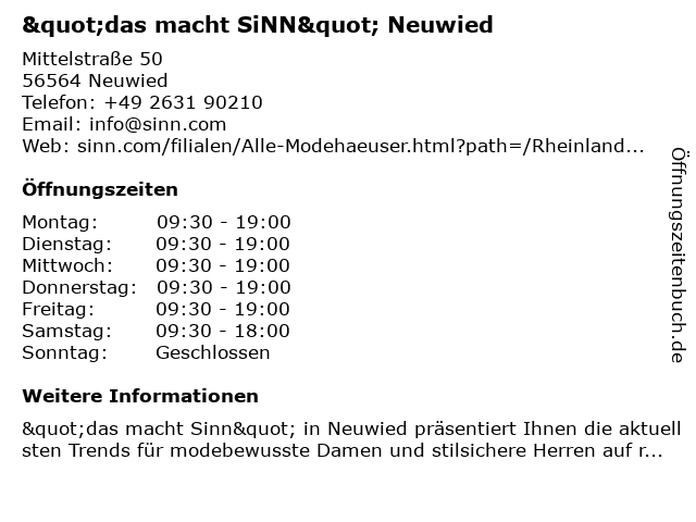 ᐅ Offnungszeiten Das Macht Sinn Mittelstrasse 50 In Neuwied