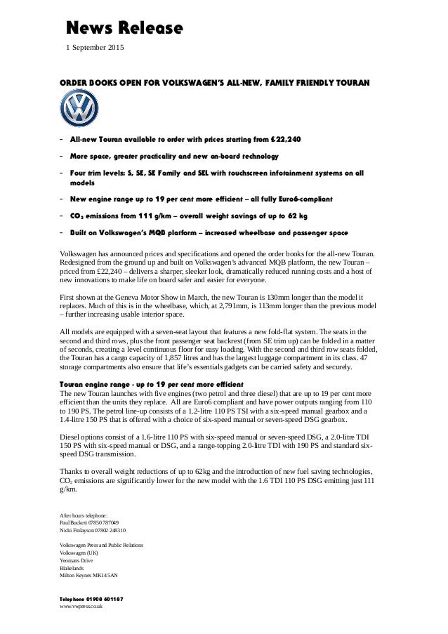 16 Volkswagen Touran Press Release