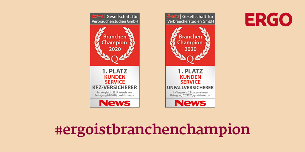 Ergo Osterreich Ergo Wurde Mehrfach Als Branchen Champion Ausgezeichnet Die Kfz Und Unfallversicherung Uberzeugten Vor Allem Im Kundenservice Und In Der Preis Leistung Wir Freuen Uns Uber Diesen Erfolg Mehr Infos