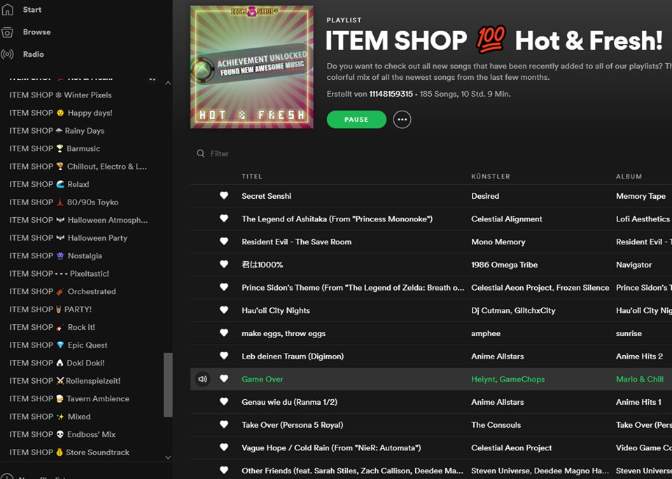 Item Shop Wir Teilen Heute Wieder Einer Unserer Playlists Mit Euch In Item Shop Hot Fresh Werden Alle Neuen Lieder Aus Allen Playlists Gesammelt So Etwas Wie Eine