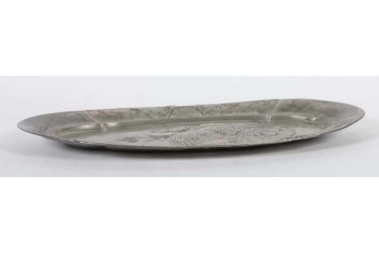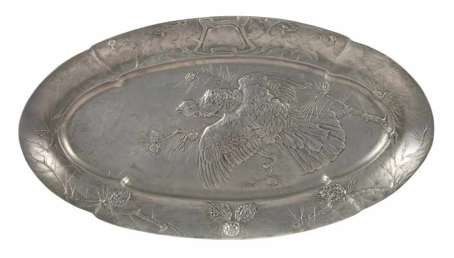 Jugendstil Zinnplatte B G Bitter Gobbers Krefeld Um 1900 Von Ovaler Form Spiegel Und Fah