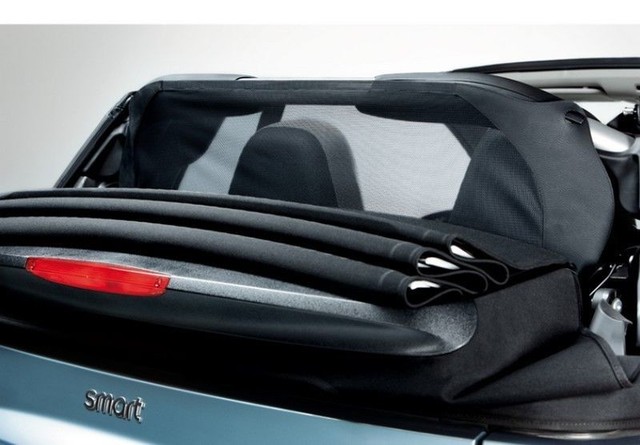 450 smart fortwo cabrio wind deflectorFolding frame with fine mesh covering Fixing elements for installation by customer (button fasteners) Installed between headrests and rollover bar Can also be kept in place when the top is closedThe wind deflector reduces swirling air in the area of the head and shoulders and backflow in the area of the pelvis and the footwell Marked reduction in.