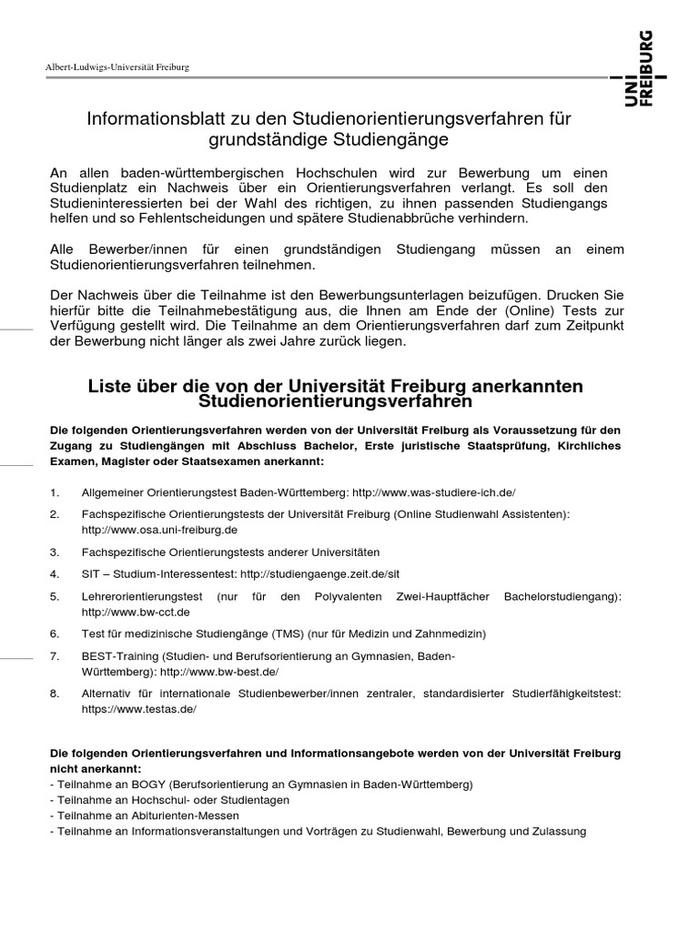 Uni Freiburg Infoblatt Studienorientierungsverfahren Pdf