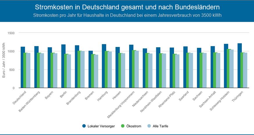 Strompreise Durchschnittliche Höhe in Deutschland nach Bundesländern Die Statistik zeigt die Höhe der durchschnittlichen Strompreise* in Deutschland nach Bundesländern im Jahr (Stand.