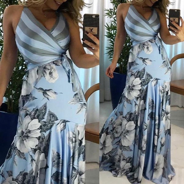 Ladies Fashion Sleeveless Floral Dress Print Casual Long Dress Wish