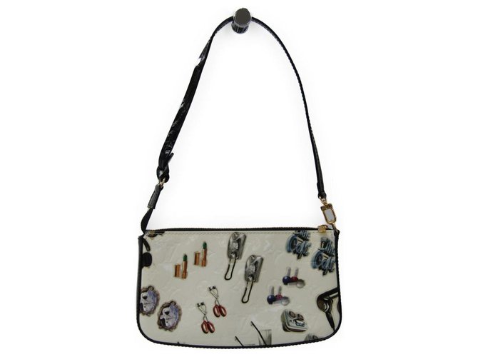 Louis Vuitton Louis Vuitton White Stickers Pochette Accessoires Handbags Leather Patent Leather Pony Style Calfskin Black White Ref 1362 Joli Closet