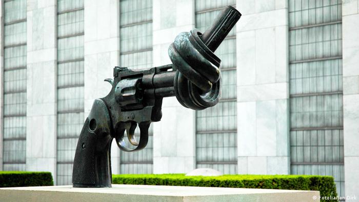 Pistole Mit Knoten Im Lauf Skulptur Des Kunstlers Carl Fredrik Reuterswaerd Vor Dem Uno Stock Photo Picture And Rights Managed Image Pic Zon Agefotostock