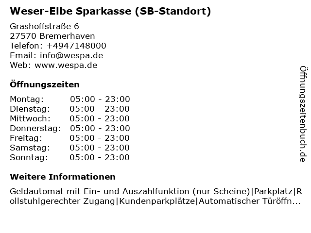 ᐅ Offnungszeiten Weser Elbe Sparkasse Grashoffstrasse 6 In Bremerhaven