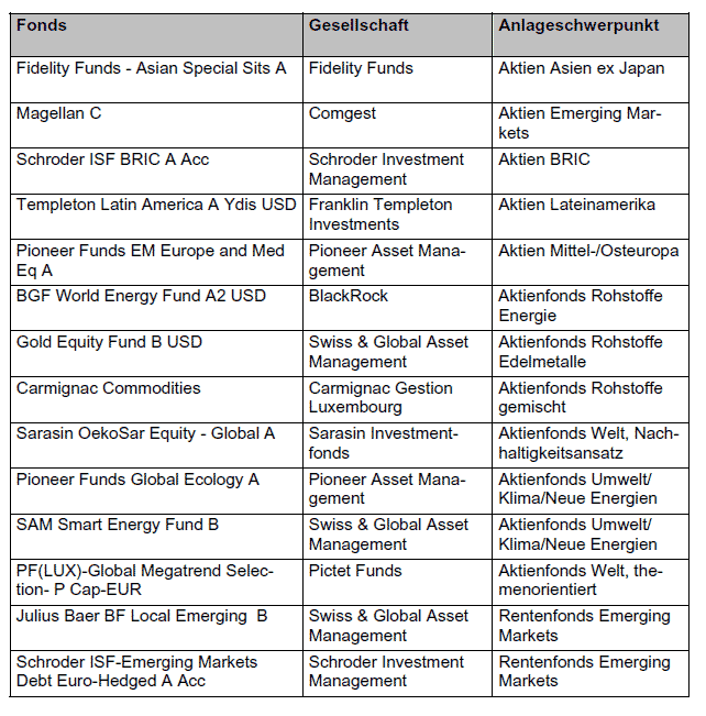 Wwk Fondsrente Fondsauswahl