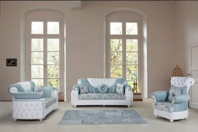 Neu Sofagarnitur Couch Set Susanne 3 2 1 Babyblau Weiss Klassisch Italienisch Ebay